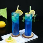 -Serving glass mein ice cubes,lemon slices,7up & tayyar blue curacao syrup (2 tbs) dal ker ache tarhan stir ker lein.