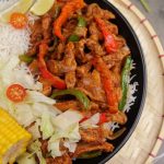 -Serving bowl mein boiled rice,tayyar fajita chicken,tayyar tomato sauce,iceberg,corn cob,lemon wedges & cherry tomato ka saath serve karein!