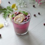 -Serving glass mein lemon slices,pineapple chunks aur podian dal ker muddle ker lein.