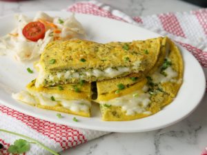 -On one side of omelette,add cheddar cheese,mozzarella cheese & flip the other side over it.