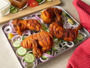 Chicken dal ker ache tarhan rub karein aur dhak ker 2-3 hours ya overnight kliya refrigerator mein marinate ker lein.