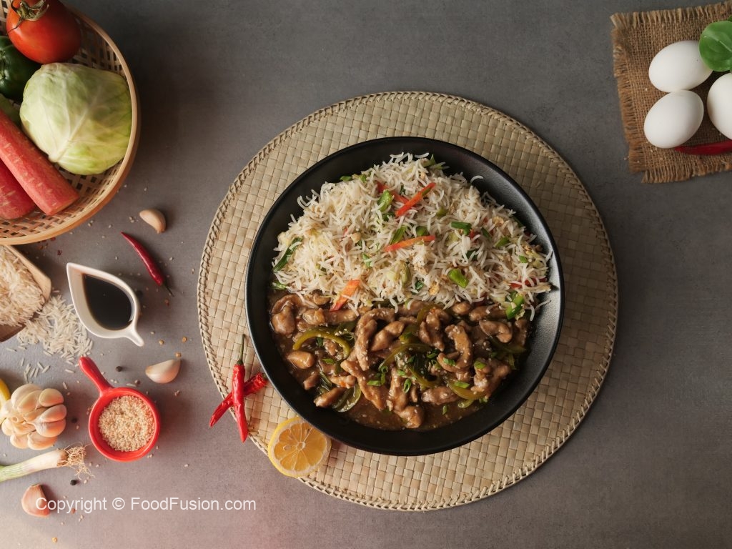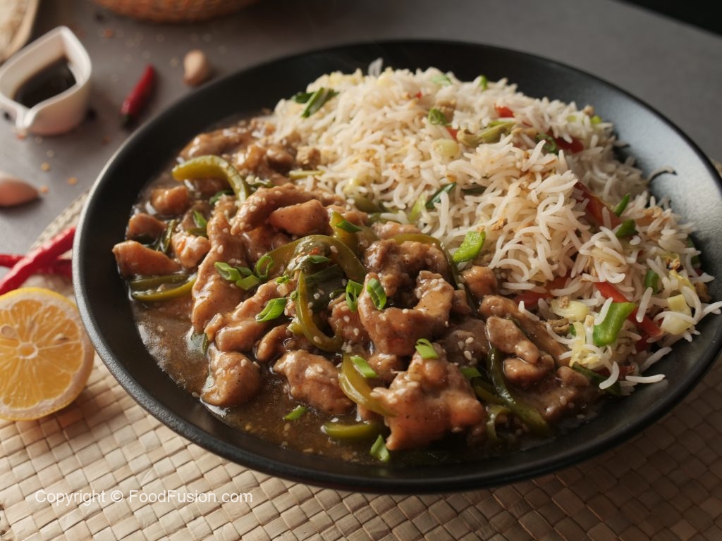 Another indo-chinese recipe, Chicken Mangolian with Fried Rice. A complete step by step recipe with simple ingridients. #HappyCookingToYou #FoodFusion