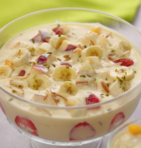 Enjoy a guilt-free treat this Ramadan! Try this Sugar-Free Fruit Custard, sweetened naturally with Tropicana Slim Stevia – a plant-based sweetener for a low carb delicious dessert! #LowCarbDessert #SugarFree #RamadanSpecial #TropicanaSlimStevia #FruitCustard #FoodFusion #happycookingtoyou