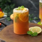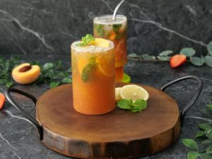 -Garnish with peach slice,mint leaves & serve!