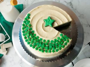 Decorate the cake with star sprinkles and cake crumbles.