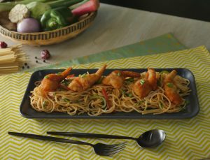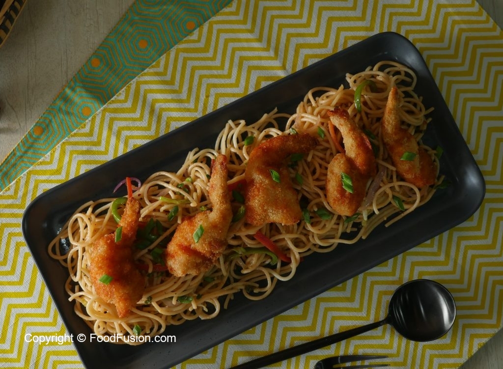 Hakka noodles with Shrimps
