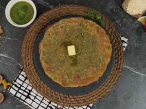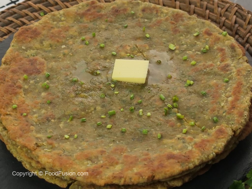 Hara lehsan aur makhan laga lein aur green chutney ka saath serve karein.