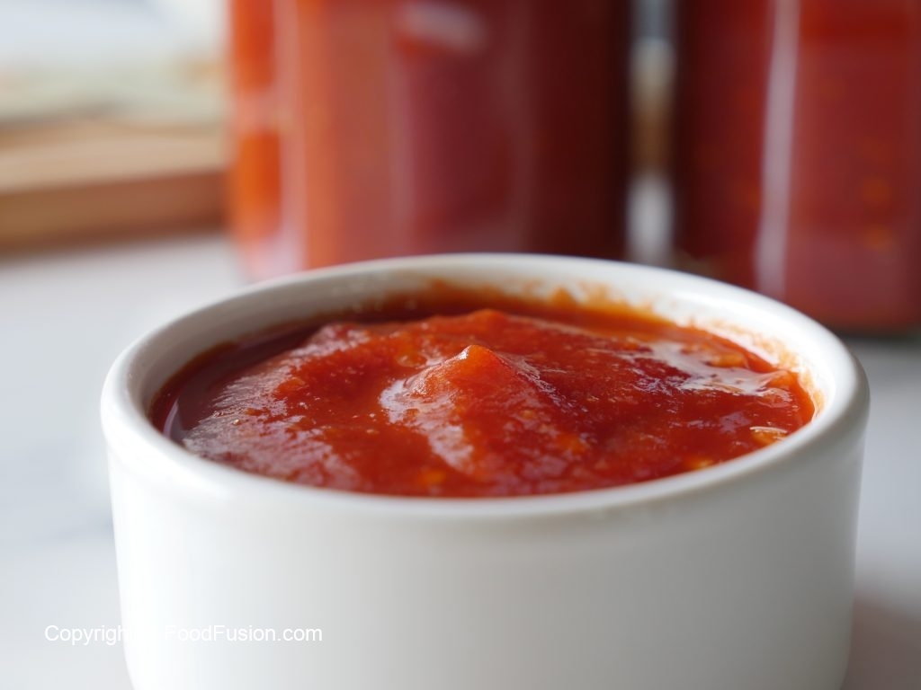 Put it on stove,in tomato puree,add blended red chilli mixture,sugar,mix well and bring it to boil and cook on medium to low flame until it thickens (approx. 35-40 minutes) and keep mixing in between (check by cold plate technique method) and cook for 8-10 minutes more to remove moisture and again check by cold plate technique method.
