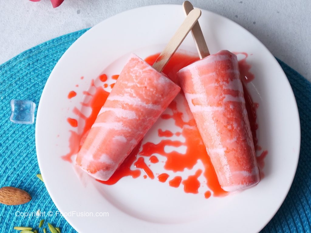 -Kulfi per lal sharbat drizzle ker ka serve karein!