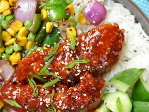 Honey Sriracha Crispy Chicken Rice Bowl