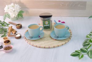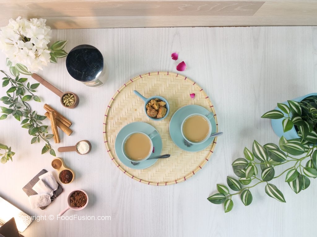 In blender,add milk powder,cloves,green cardamom,cinnamon stick,star anise,ginger powder, jaggery,tea leaves & grind well.