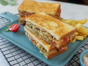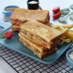 -Apply butter on both sides & toast on low flame from both sides until golden & crispy (makes 2-3 sandwiches).