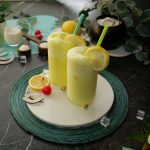 -In a shaker,add crushed ice,prepared lemon sugar syrup (3-4 tbs),coconut milk,close the lid and shake well.