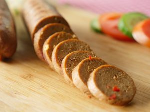 Boiling water mein tayyar sausages dal ker 8-10 minutes kliya boil ker lein aur foran ice chilled pani mein dal ker 5 minutes kliya chor dein phir cling film ko nikal lein.