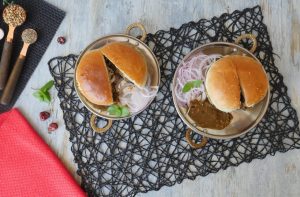 Serve kaleji bun kabab with onion and bun kabab chutney.