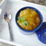 In raw mango pulp,add sugar,red chili powder,salt and water,mix well until sugar is dissolved.