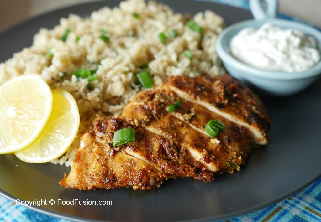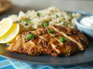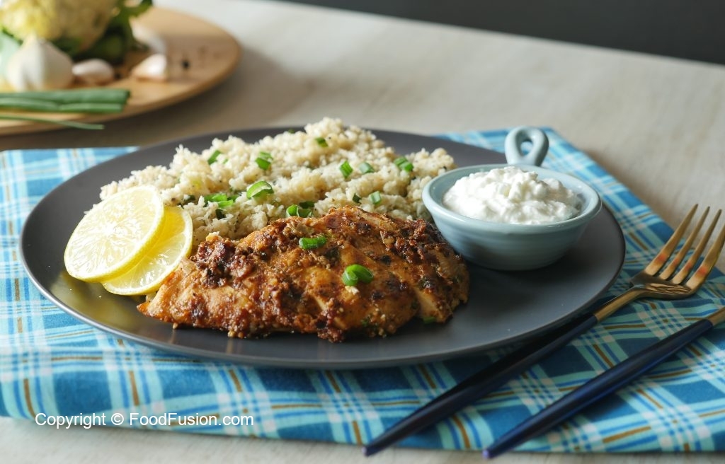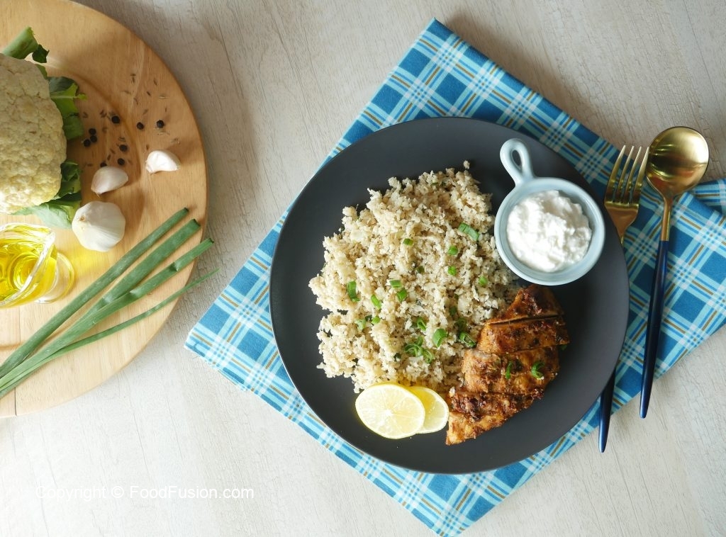Keto Cauliflower Garlic Rice with Spicy Grilled Chicken