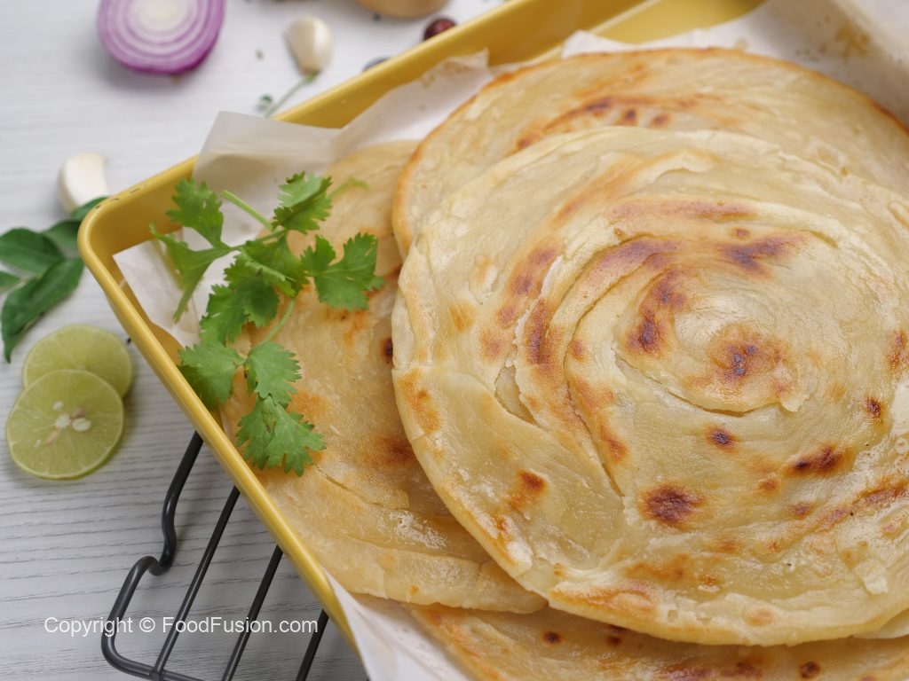 -Heat griddle & fry paratha on medium flame from both sides with clarified butter.