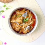 -On a muslin cloth,add black cardamom,cinnamon sticks,cloves,mace,nutmeg,cumin seeds,dried rose petals & tie to make a potli (bouquet garni) & add it in pot.