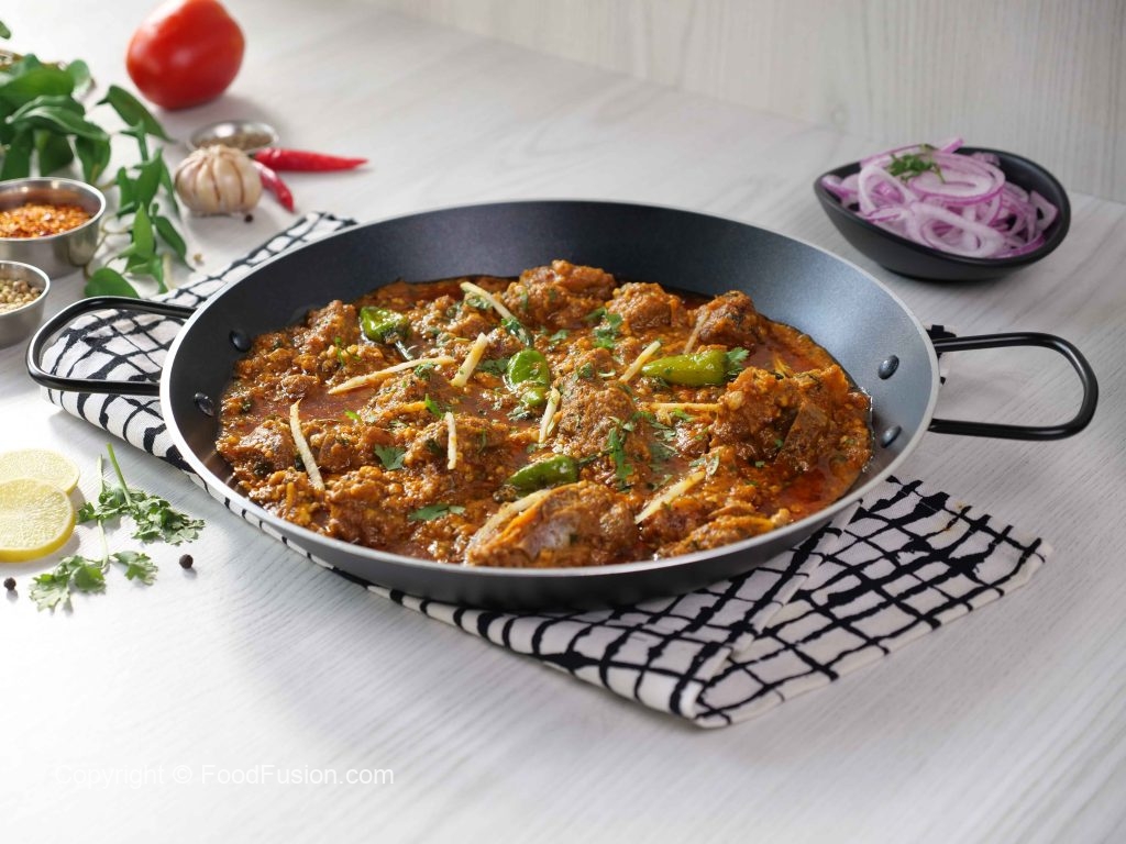 -Karahi mein cooking oil,mutton,pink salt aur makhan daal kar dhak dein,chulha on karein aur darmiyani ancch per makhan melt hone dein phir achi tarah mix kar ke high flame par 4-5 minutes tak paka lein.