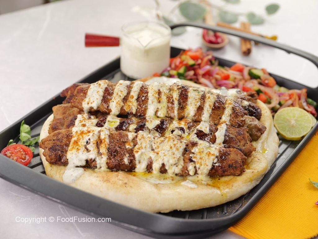 -On toasted naan,place kababs,drizzle prepared sauce & sprinkle chaat masala.