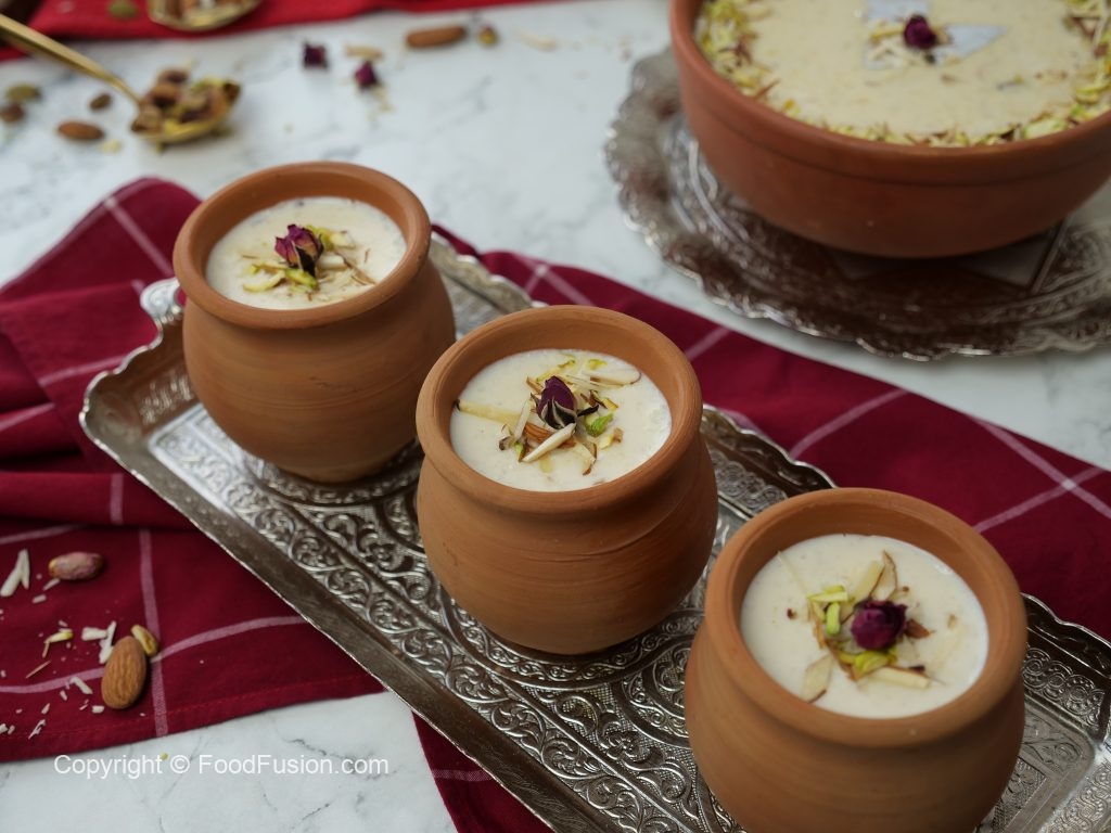 -Badam,pista aur dried roses sa garnish ker lein.