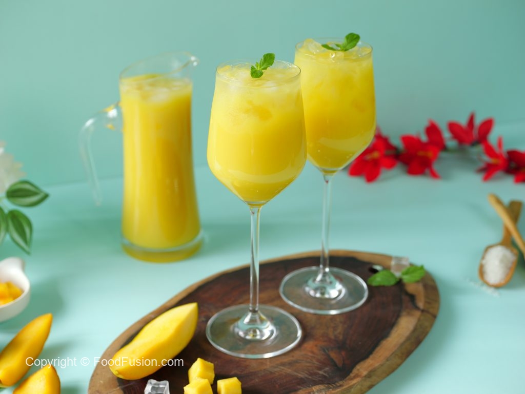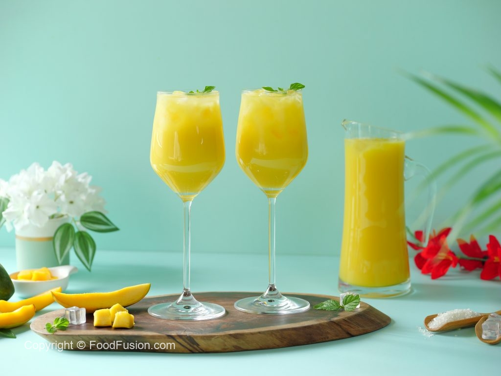 -Serving glass mein ice aur mango frooti dal dein aur podina sa garnish ker ka thanda serve karein!