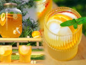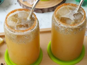 Blender mein aam,mango green tea,lemon juice,brown sugar aur podina dal ker ache tarhan blend ker lein.