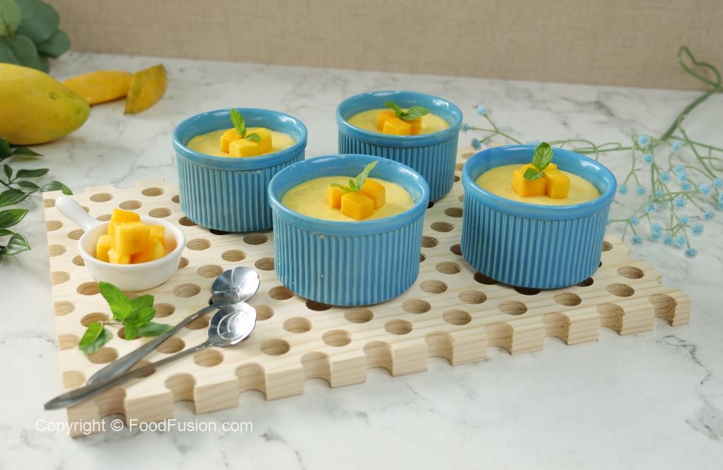 -Garnish with mango chunks,mint leaves & serve (makes 5-6).
