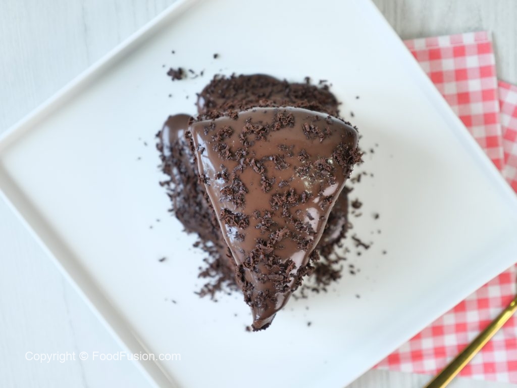 -Ek aur cake layer rakh dein aur tayyar chocolate frosting laga lein aur cake ki sides ko frosting sa cover ker lein aur 2 hours kliya refrigerate ker lein.