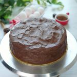 -Place first layer of cake on cake stand & apply prepared chocolate frosting.