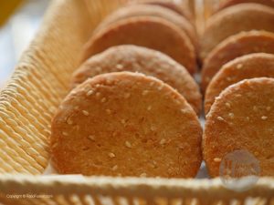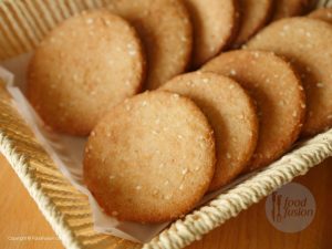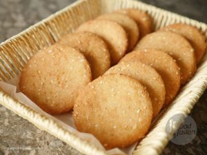 In bowl,add all-purpose flour,sesame seeds,desiccated coconut,semolina,cardamom powder and mix well.