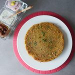 Knead dough again,take a small dough,grease hands with oil and make a ball,sprinkle dry flour,add & spread cooking oil and roll out with the help of rolling pin.