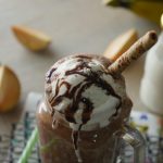 In serving jar,add prepared smoothie,ice cream and garnish with chocolate syrup & serve chilled!