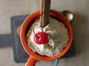 Garnish with whipped cream,cherry,wafer & serve.