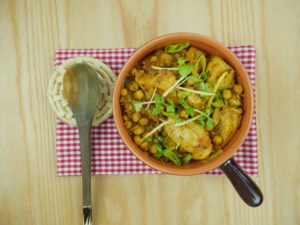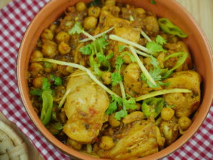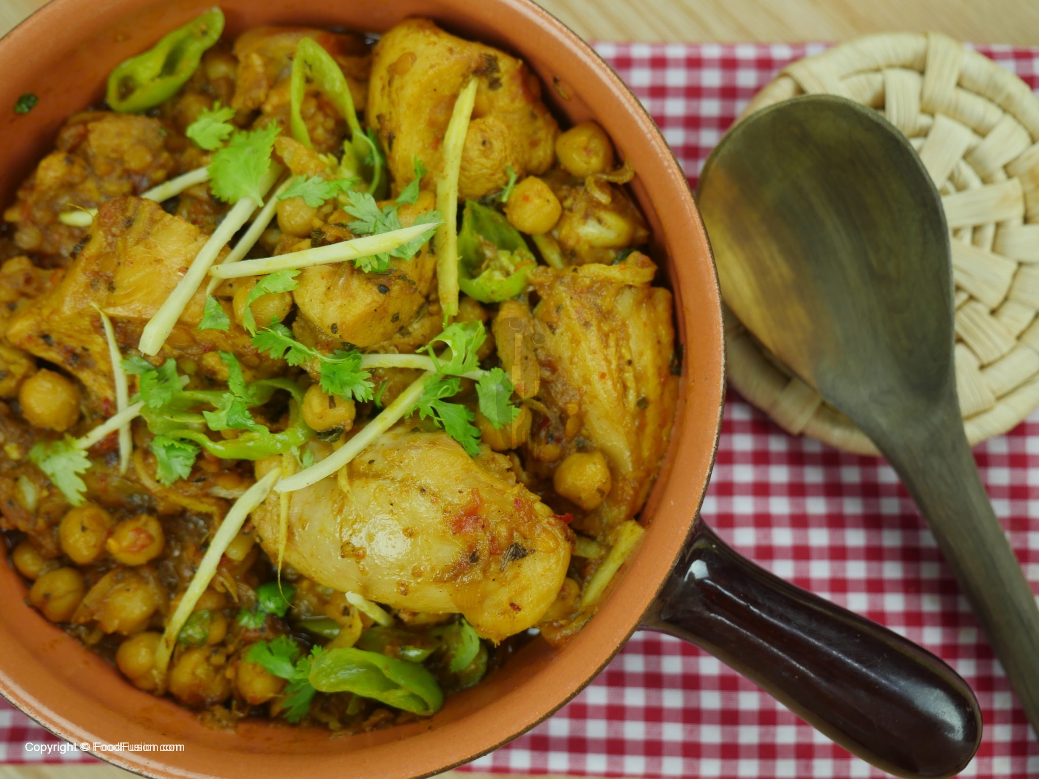 In pan heat oil, add onion and fenugreek seeds fry till light gold. Add tomatoes and when tender add GGP, chicken and red lentils and mix well. Add crushed chilies, coriander powder, turmeric, cumin powder, red chili powder and black pepper. Mix well, add water and salt and cover the lid till chicken is about to done.