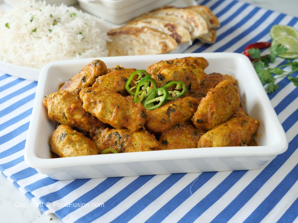 -Add fried muthi kababs,cover & cook on low flame for 6-8 minutes then turn sides gently.