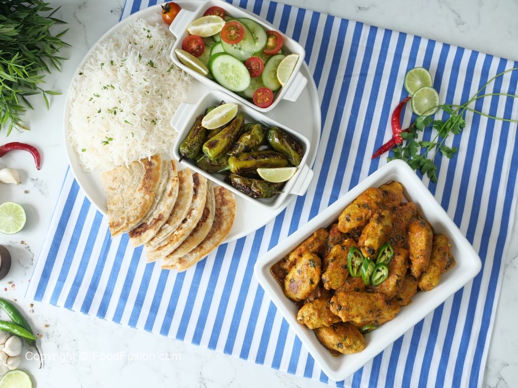 An amazing dawat platter – “Muthi Dum Kabab with Masala Stuffed Green Chilies”. #HappyCookingToYou #FoodFusion