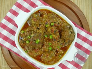 Add 2 cups of water and mix. Cover and cook until meat is tender on low flame. (You can additional water to tenderize meat)
