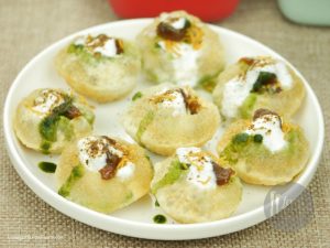 • Sprinkle little onion (fine chopped) and sev nimco, again add little meethi chutney,green chutney,yogurt and sprinkle some chaat masala.