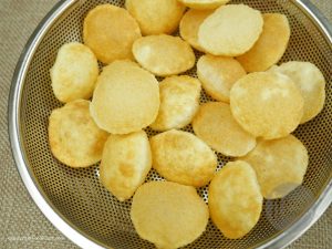 • With the help of cutter,cut into round shapes/small circles and roll again.Poori size shouldn't more than 2 inches.