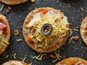 Drizzle prepared yogurt mayo sauce,nimco sev and black olive & serve!