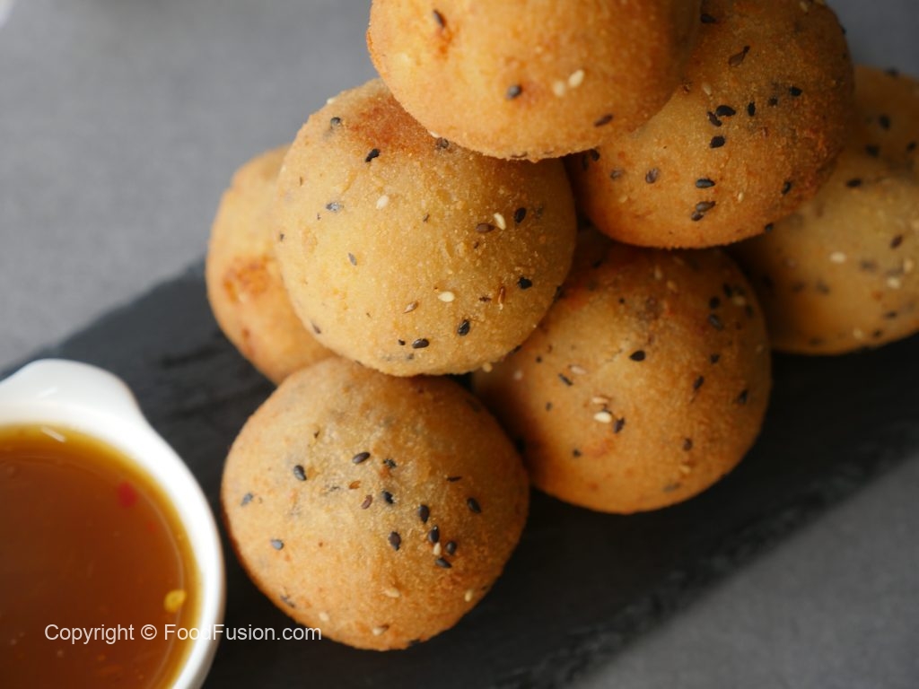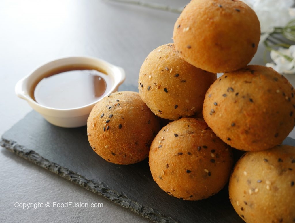 Now dip ball in all-purpose flour paste and then coat in breadcrumb (makes 10-12).
