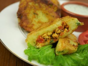Cutlets banana kliya, allo k mixture la ker flat kabab bana lein,bech mein filling rakh k dono haathon ki madad sa daba ker kabab bana lein.