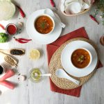 -In a serving bowl,add hot & sour soup & garnish with spring onion leaves,chilli oil & serve!