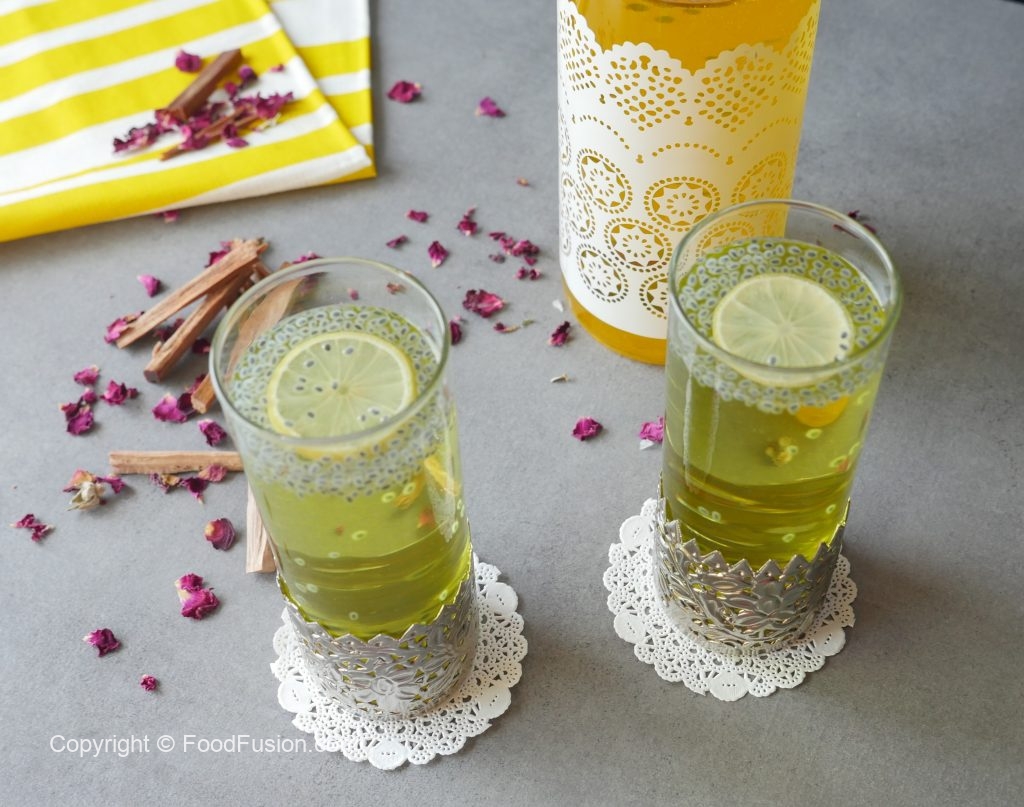 Serving glass mein ice cubes aur tayyar sandal ka sharbat dal ker serve karein.