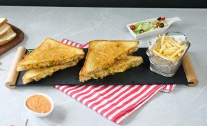 -On two large bread slices,apply butter,add & spread prepared filling on one bread slice & flip the other bread slice & apply butter.