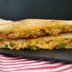 -Flip the prepared sandwich in a frying pan (butter side down),apply butter,cover & grill/cook on very low flame from both sides until golden & crispy (makes 4 sandwiches).
