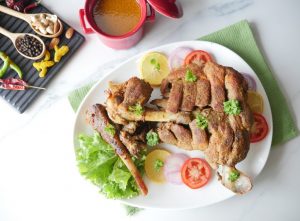 Prick and add marks/cuts on mutton leg.