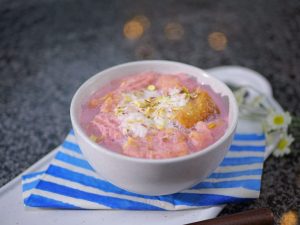 -In a cooking pot, add milk, bring it to boil, add prepared pink tea concentrate, mix well then add pink food color & mix well.
